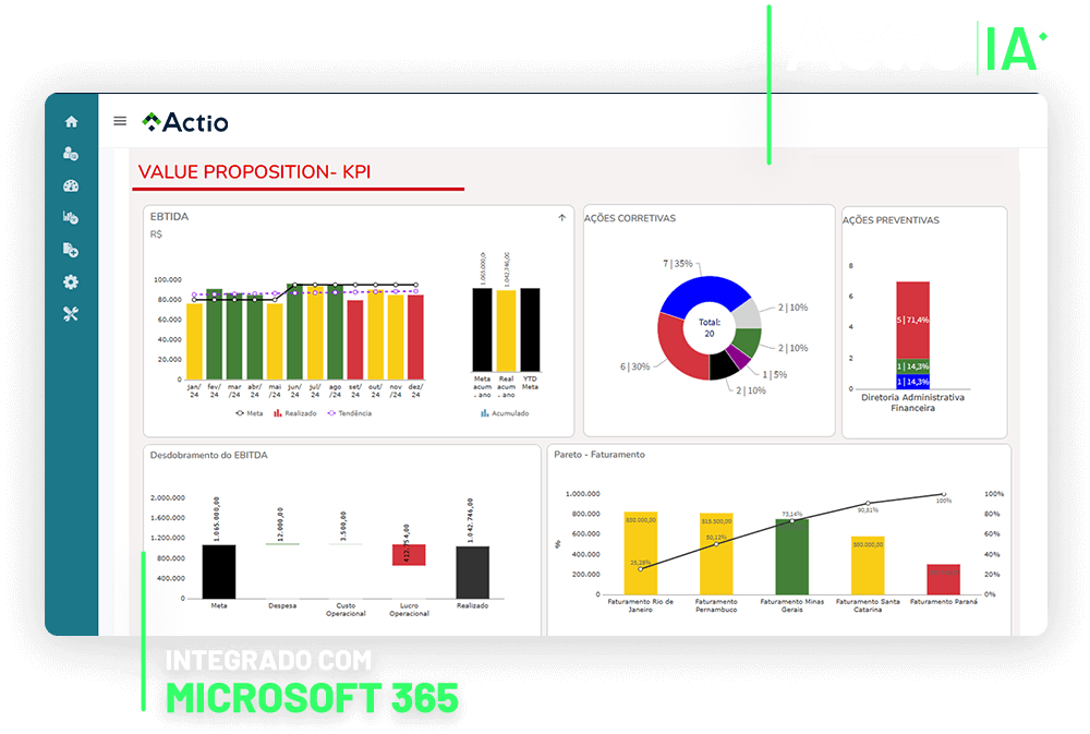 A Actio conecta estratégia, performance, riscos e resultados em um só lugar.