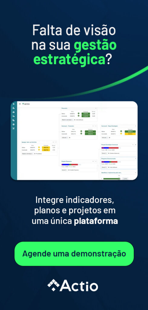 Assim, Actio Gestão Estratégica se destaca como uma das soluções mais completas do mercado para a gestão de OKRs em 2025. Desenvolvido para ambientes organizacionais que demandam agilidade, integração e accountability, o Actio Gestão Estratégica oferece recursos como painéis personalizáveis, alertas inteligentes, relatórios preditivos e visualizações intuitivas de alinhamento entre áreas. Além disso, oferece um mar de outras metodologias para melhor servir o seu negócio. Elas podem, inclusive, ser integradas para otimizar ainda mais visualização e escolhar assertivas.