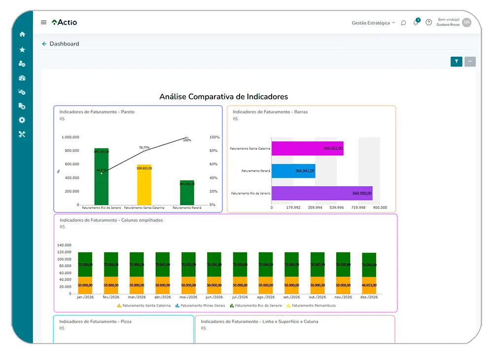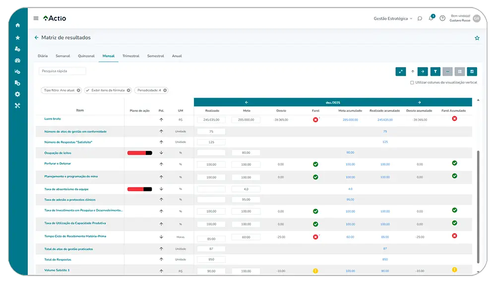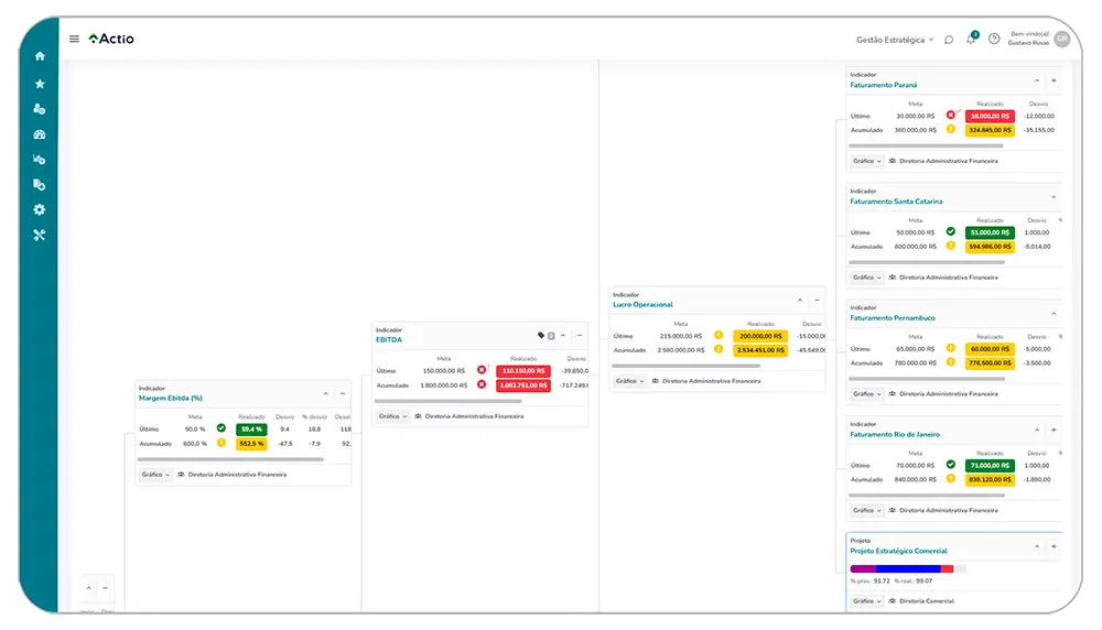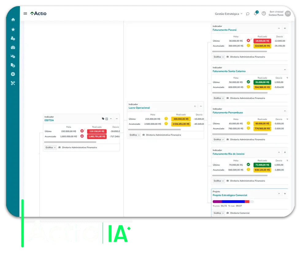 O Actio conecta estratégia, desempenho, projetos e ações em uma plataforma intuitiva, permitindo alinhamento, execução disciplinada e visibilidade em tempo real para a tomada de decisões informadas em toda a organização.