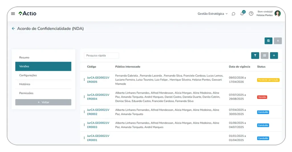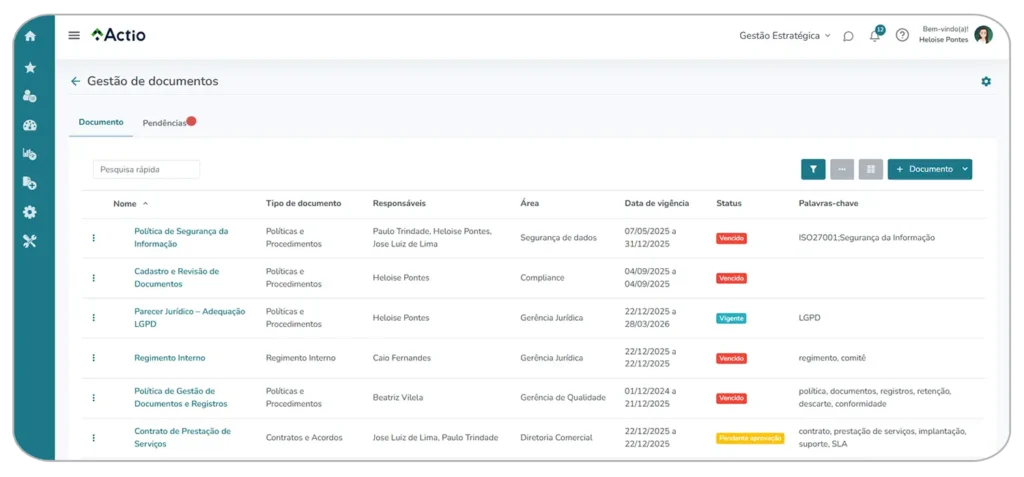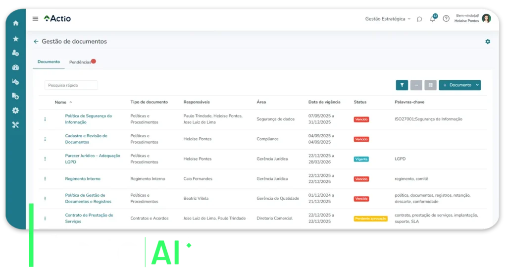 Actio’s Document Management Software centralizes documents in a single environment, with access control, versioning, approval workflows, and full traceability — including corporate policies and procedures — ensuring the right version is used at the right time.