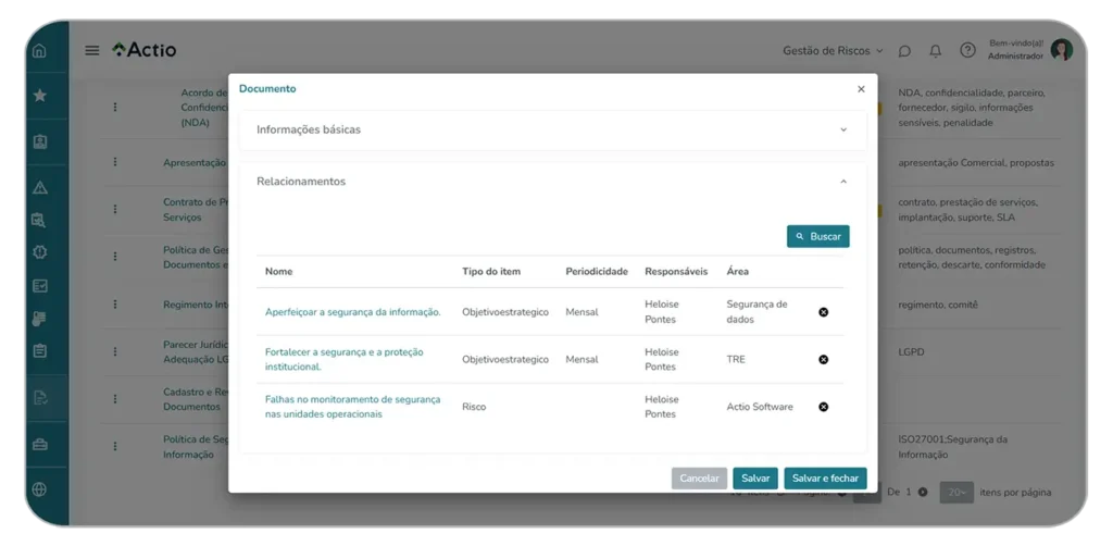 In Actio, documents can be linked to objectives, KPIs, risks, and projects, supporting decision-making, audits, and risk management within the governance context.