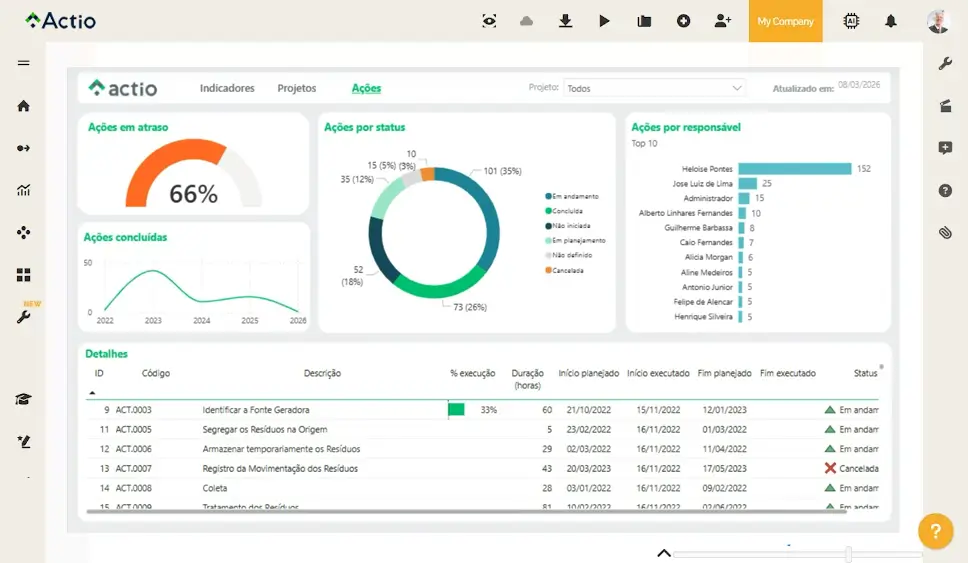 The ACTIO software empowers you to achieve results. Through it, we can focus on identifying recurring problems that hinder the achievement of goals and finding solutions.