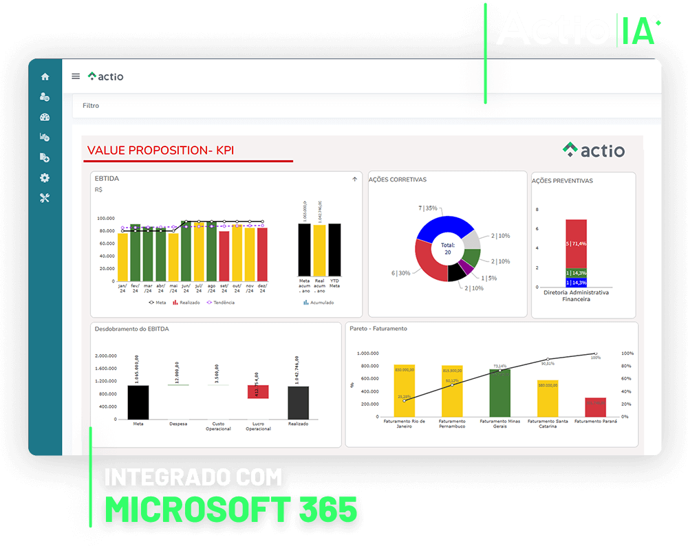 “O software Actio nos capacita a alcançar resultados. Por meio dele, conseguimos focar na identificação de problemas recorrentes que dificultam o alcance das metas e encontrar soluções.”
